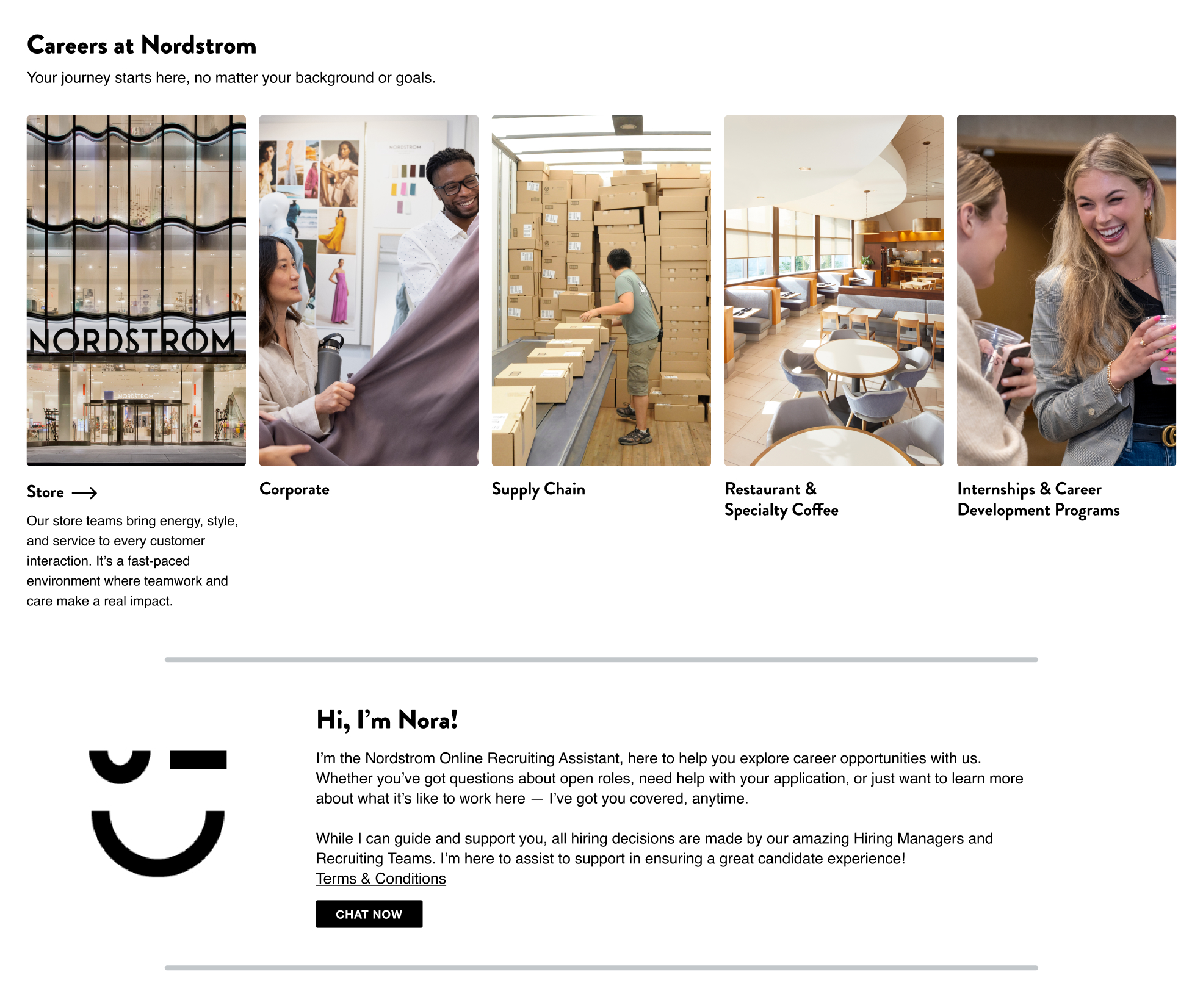 The final experience translated Nordstrom’s premium brand into a hiring context that felt refined, approachable, and clear, even at scale.